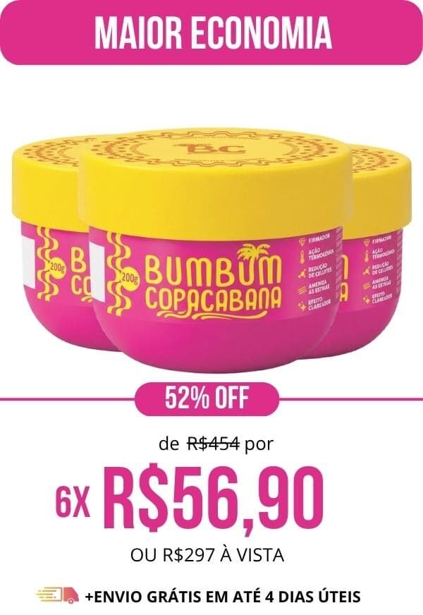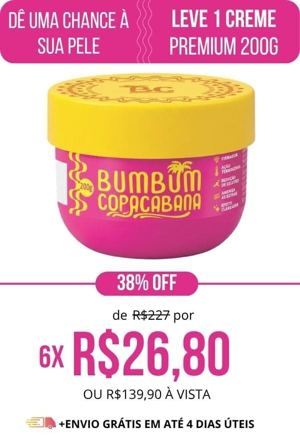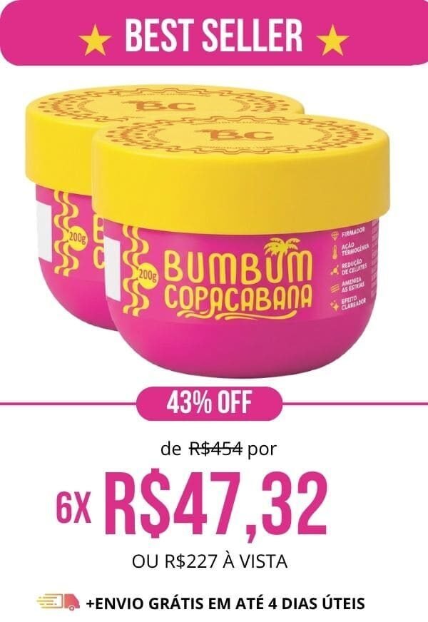 Com uso contínuo, o Bumbum Copacabana entrega firmeza, redução visível da celulite, diminuição da foliculite, pele mais lisa, uniforme e com brilho natural.